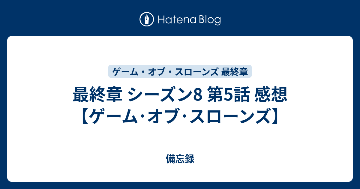 ゲーム・オブ・スローンズ シーズン8 5話-ゲームオブスローンズ dvd 8 gb;シーズン8 第6話α 感想最終回を終えて、今思うことゲーム・オブ・スローンズ 前回の記事では6話の各シーンについて思ったことを語りましたが